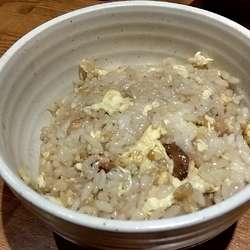 ラーメンを少し食べ進め、半チャーハンへ。