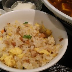 定食についてくるチャーハンは、小さな茶碗にこんもり盛られた一品。