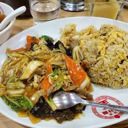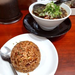 わりとパラパラ固めな仕上がり。玉子多めチャーシュー少なめ。量は結構多いです。お品書きに麺大盛150円と書かれていましたがご飯もの大盛の表記はなくちょっとドキドキしましたが麺と同じ150円増しでした。